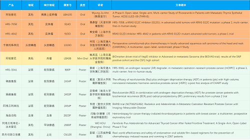 在胸腺上皮肿瘤、头颈鳞癌、肉瘤、前列腺癌、甲状腺癌等其他多个疾病领域,卡瑞利珠单抗、阿帕替尼、瑞维鲁胺、阿得贝利单抗、法米替尼、HRS-7058、HRS-4642、HRS-5041等抗肿瘤创新药相关研究一共入选了4项口头报告、1项简短口头报告、5项壁报,彰显了凯发k8医药强大的研发实力。此外,海曲泊帕和昂丹司琼口溶膜分别在防治化疗导致的血小板减少和恶心呕吐方面各有1项研究入选壁报。