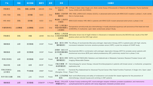 在胸腺上皮肿瘤、头颈鳞癌、肉瘤、前列腺癌、甲状腺癌等其他多个疾病领域,卡瑞利珠单抗、阿帕替尼、瑞维鲁胺、阿得贝利单抗、法米替尼、HRS-7058、HRS-4642等抗肿瘤创新药相关研究一共入选了4项口头报告、1项简短口头报告、4项壁报、1项电子壁报,彰显了凯发k8医药强大的研发实力。此外,海曲泊帕和昂丹司琼口溶膜分别在防治化疗导致的血小板减少和恶心呕吐方面各有1项研究入选壁报。